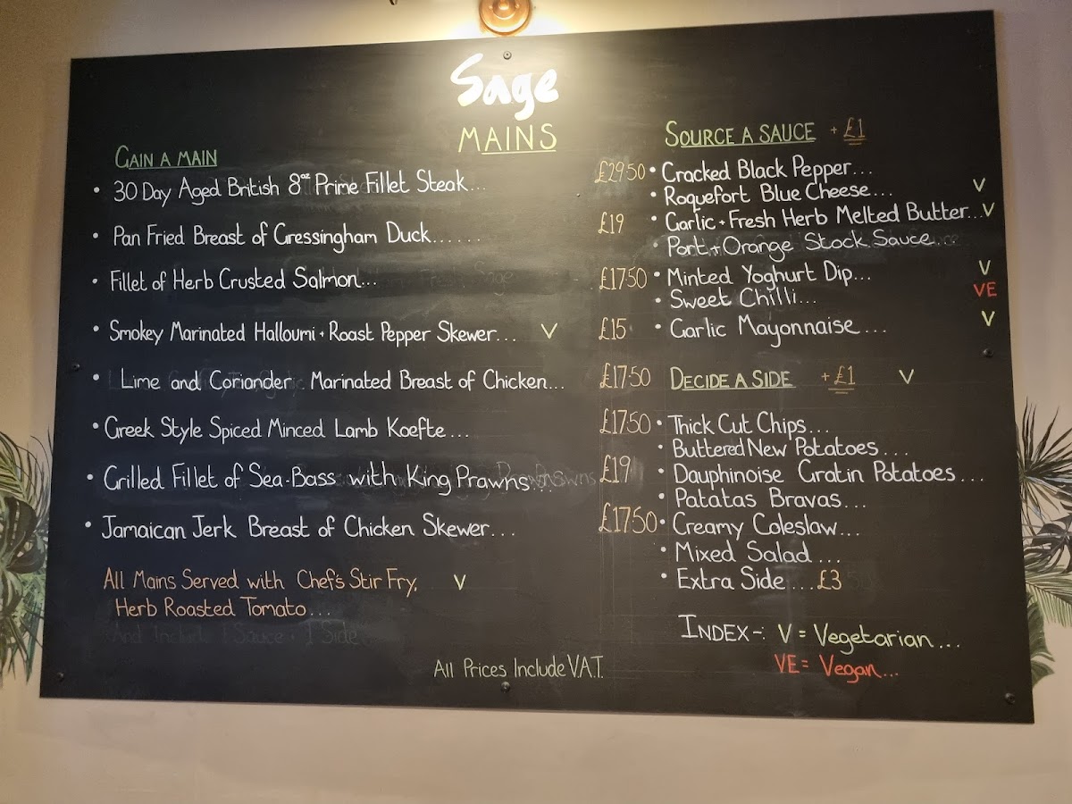 Sage Grimsby DN31 1EY Menu (2025 Update)